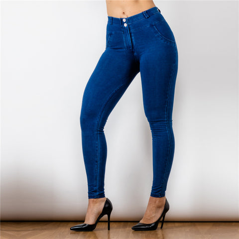 Shascullfites Mid Rise Super Stretch Skinny Jeans Mom Jeans Dark Blue Pull On Straight Leg Bum Lifting Jeggings Women