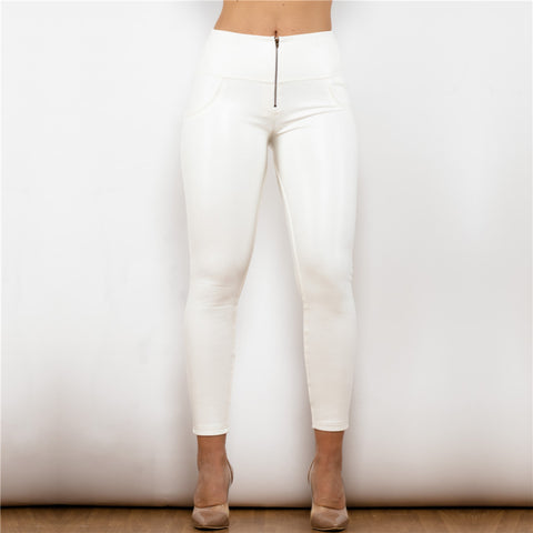 Shascullfites Leather High Rise Pants WhiteLeather Skinny Pants Winter Thermal Tights And Push Up Leggings For Women
