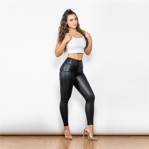 Shascullfites High Waisted Pleather Pants Womens Black Faux Leather Pants Stretch Fleece Lined Workout Push Up Leggings