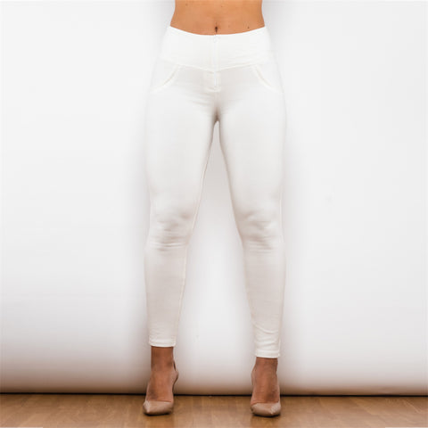Shascullfites Womens High Waisted White Pants Fitness Sports Tights Scrunch Bum Lifter Workout Leggings